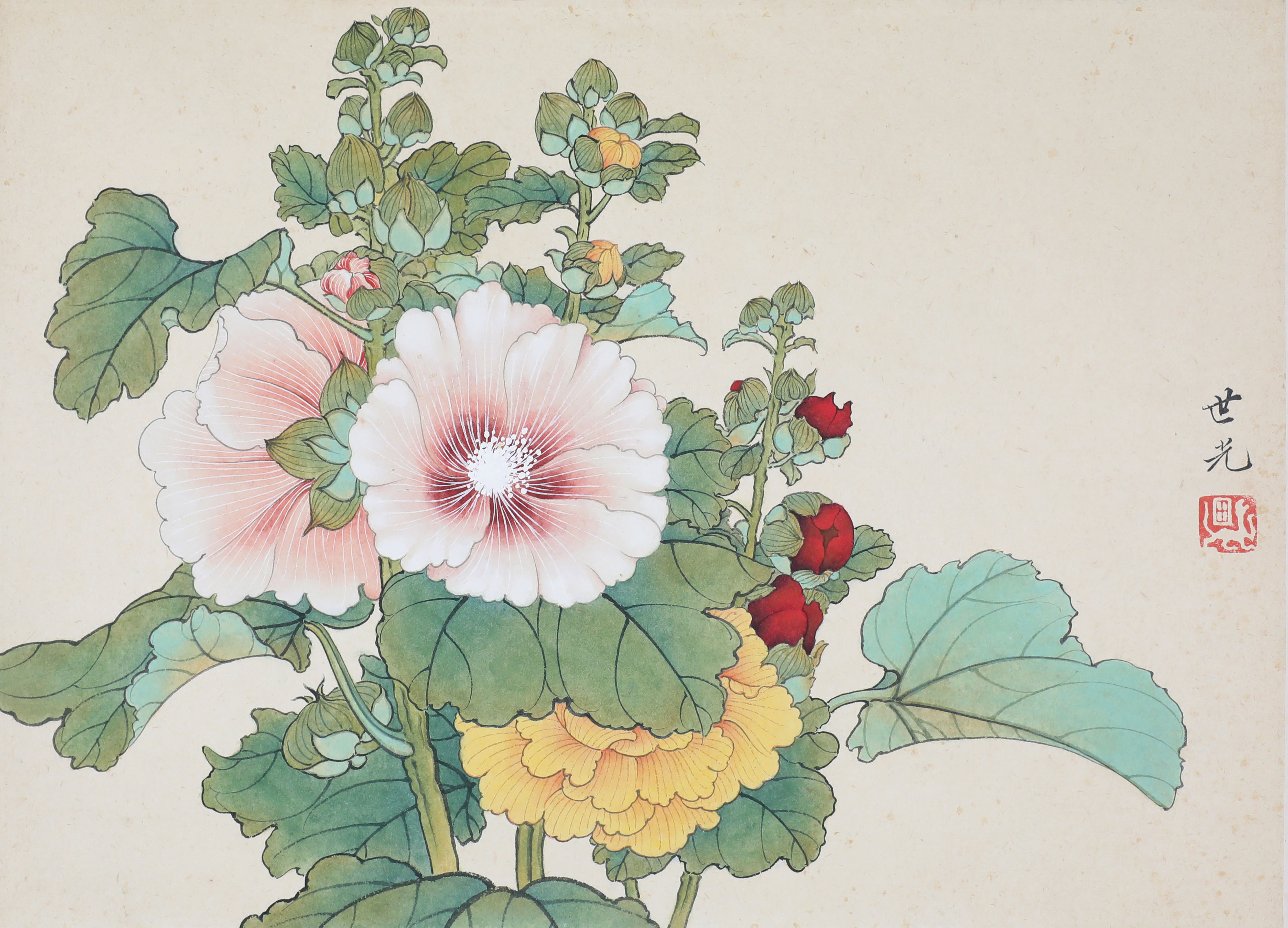 田世光(1916年10月—1999年7月)号公炜,祖籍山东乐陵,世居北京西海淀六郎庄。师承张大千、赵梦朱、吴镜汀、于非闇、齐白石诸先生。早年拜张大千门下,为大风堂弟子之一 。早年求学于京华美术学院,专攻国画花鸟,解放前在北平国立艺专任教,曾任中央美院教授。他长期从事花鸟、山水画创作,继承了宋元派双勾重彩工笔花鸟画的优良传统技法,并赋之予新的时代精神,为我国现代工笔花鸟画名家。田世光先生是中国美术家协会会员,北京工笔重彩画副会长,中国画研究院第一届院务委员。
