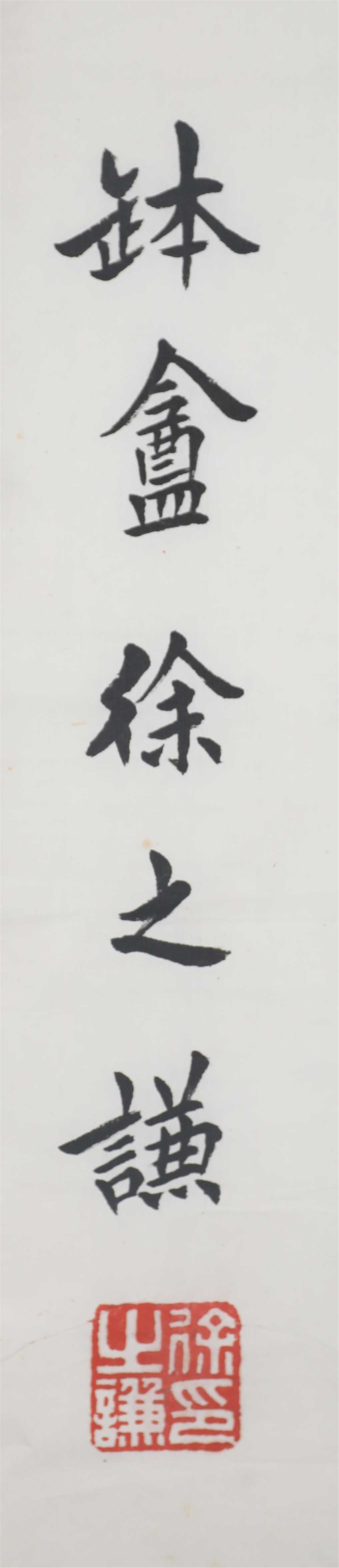 徐之谦(1903年--1985年),字钵厂,号益斋又号居庸山农,昌平区马池口镇葛村人,近代书法大家,篆刻家。徐之谦,祖上世代务农,家境清贫,幼年仅读过三年私塾。1920年经友人介绍,进北京文楷斋刻书处学徒。因其自幼喜爱书法,此项工作恰与志趣相投,工作起来十分勤奋。工作之余,他从临摹《欧阳询九成宫醴泉铭》开始,朝夕用功,书艺