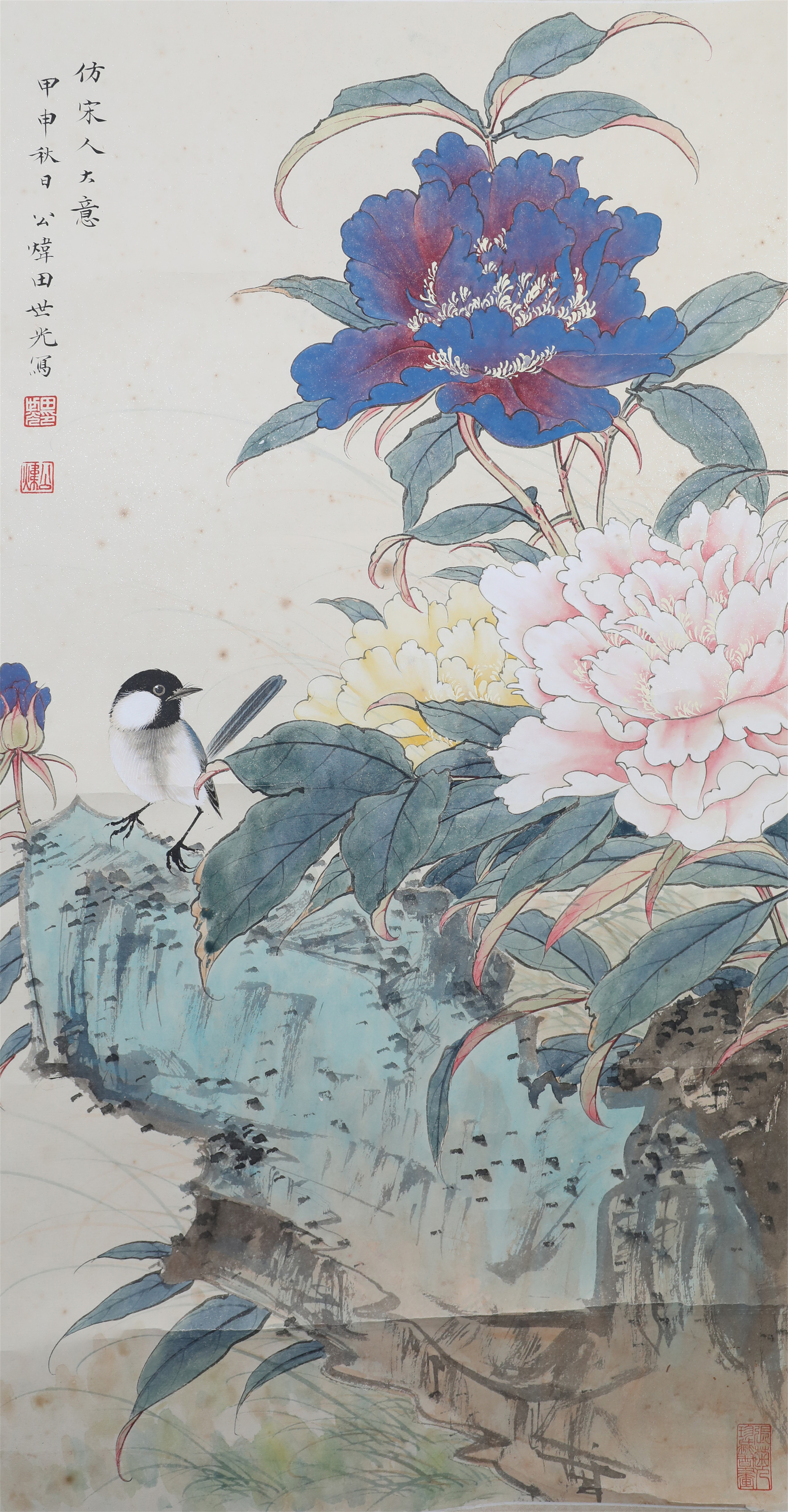 田世光(1916年10月—1999年7月)号公炜,祖籍山东乐陵,世居北京西海淀六郎庄。师承张大千、赵梦朱、吴镜汀、于非闇、齐白石诸先生。早年拜张大千门下,为大风堂弟子之一 。早年求学于京华美术学院,专攻国画花鸟,解放前在北平国立艺专任教,曾任中央美院教授。他长期从事花鸟、山水画创作,继承了宋元派双勾重彩工笔花鸟画的优良传统技法,并赋之予新的时代精神,为我国现代工笔花鸟画名家。田世光先生是中国美术家协会会员,北京工笔重彩画副会长,中国画研究院第一届院务委员。