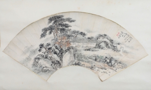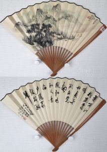 编号:9803 作者:胡佩衡 名称:成扇 规格:18.5×48cm 形式:纸本竹骨 售价:¥12000 备注:胡佩衡、鲍亚晖合作