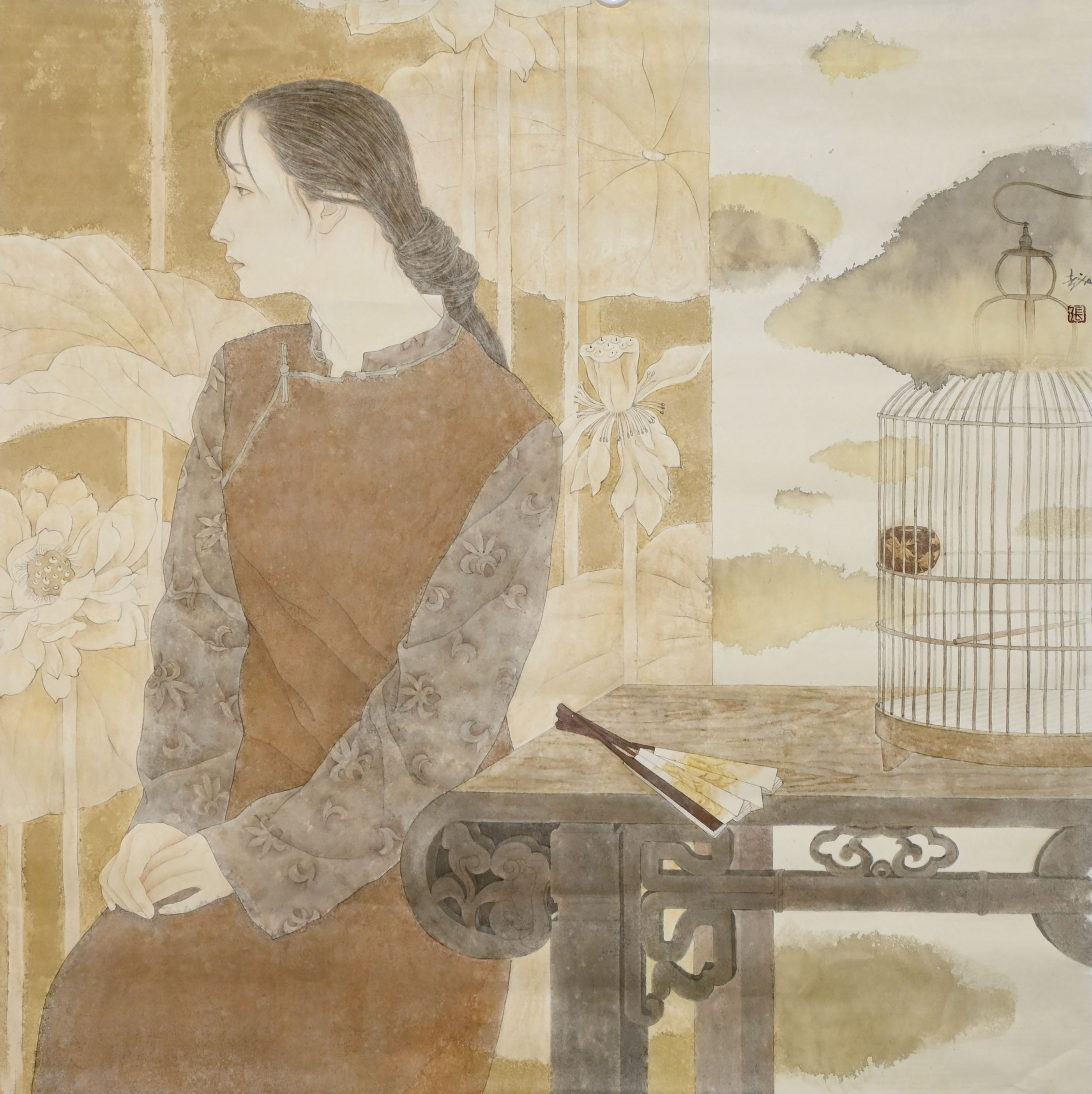 张越,一九七二年出生,中国美术家协会会员,太原画院专职画家。参展纪录有:2002年,作品《晨风轻轻的吹》参加中国美协2002年全国中国画作品展,辽宁。作品《静静的晨曦》参加中国美协第五届当代中国工笔画大展,北京。作品《月满城楼》参加中国美协“同里一保护世界遗产”国际中国画大展,北京。