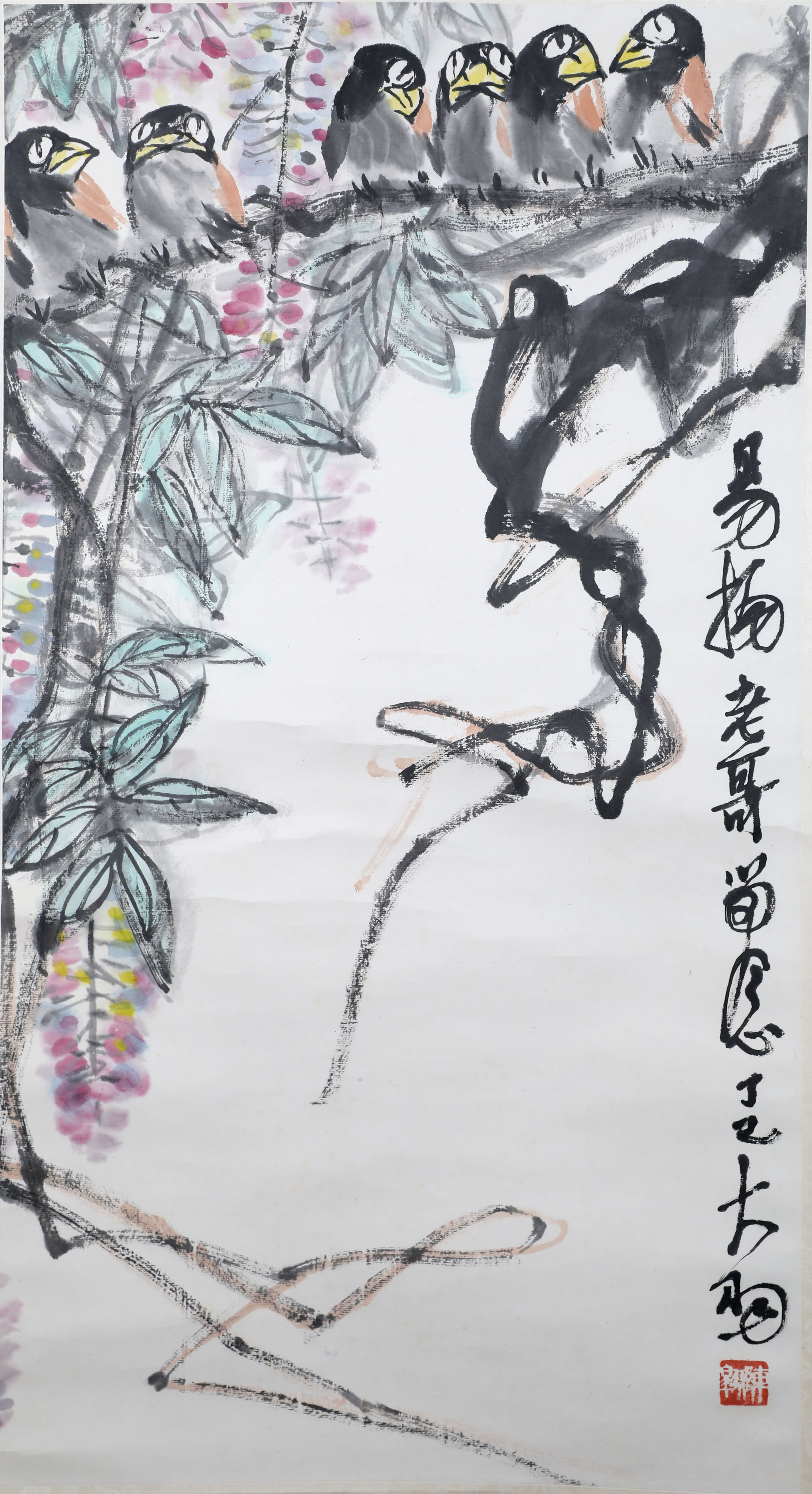 陈大羽(1912年-2001年6月1日),原名汉卿,其师齐白石为之改为陈翱,取字大羽。籍贯广东潮阳,1935年毕业于上海美术专业学校中国画系,曾在潮洲、青岛等地任教。期间,经谢公展一位学生的介绍,得识齐白石并拜之为师,致力于大写意花鸟画的创作,并兼及山水、书法、篆刻,四屋十年代,先后在上海美专、无锡华东艺专和南京艺术学院担任中国画教学工作。历任历任中国书法家协会常务理事,中国美术家协会会员,江苏省书法家协会副主席,江苏省美术家协会理事,出版有《大羽画集》、《陈大羽书画篆刻作品集》等。