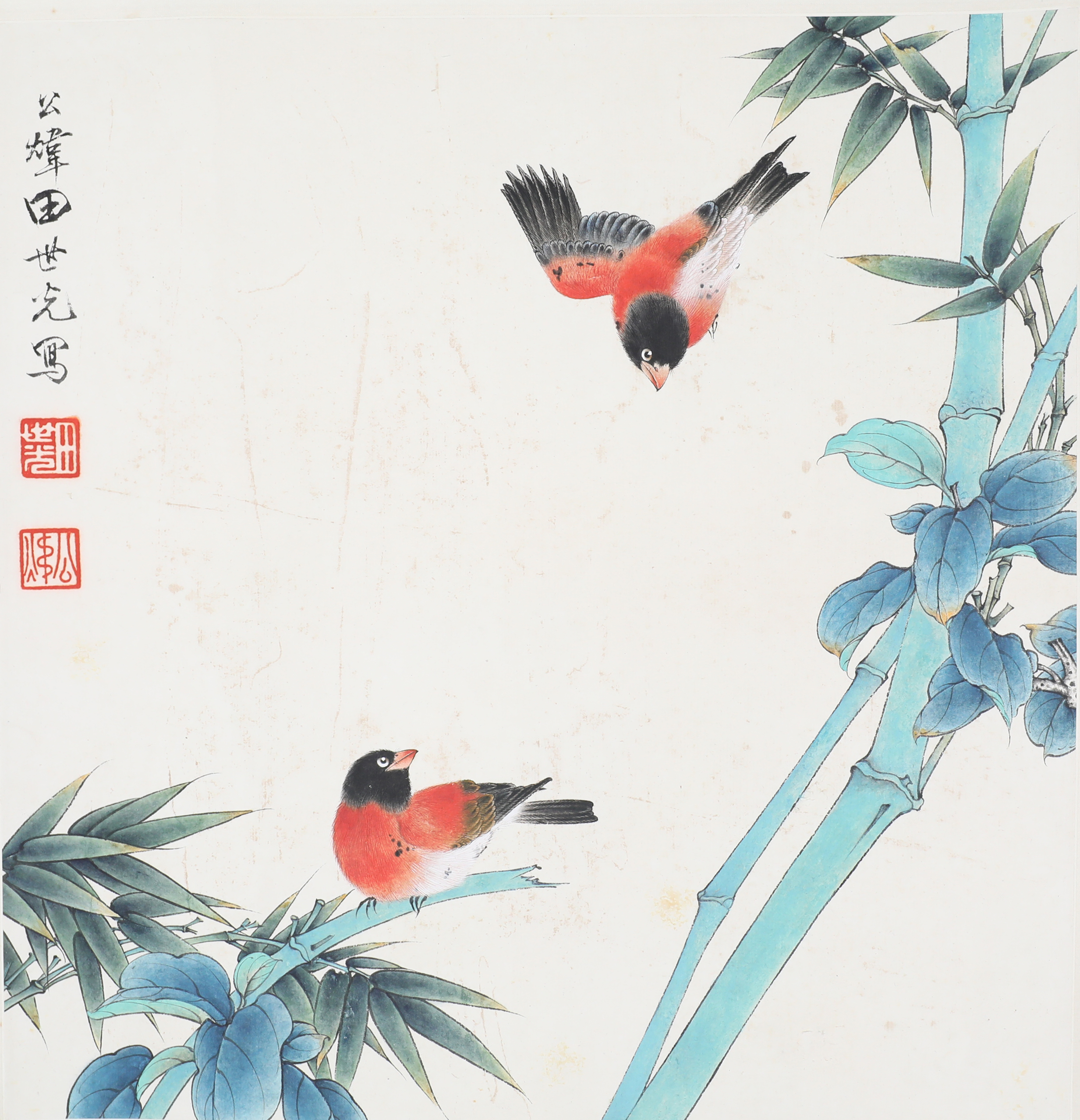 田世光(1916年10月—1999年7月)号公炜,祖籍山东乐陵,世居北京西海淀六郎庄。师承张大千、赵梦朱、吴镜汀、于非闇、齐白石诸先生。早年拜张大千门下,为大风堂弟子之一 。早年求学于京华美术学院,专攻国画花鸟,解放前在北平国立艺专任教,曾任中央美院教授。他长期从事花鸟、山水画创作,继承了宋元派双勾重彩工笔花鸟画的优良传统技法,并赋之予新的时代精神,为我国现代工笔花鸟画名家。田世光先生是中国美术家协会会员,北京工笔重彩画副会长,中国画研究院第一届院务委员。