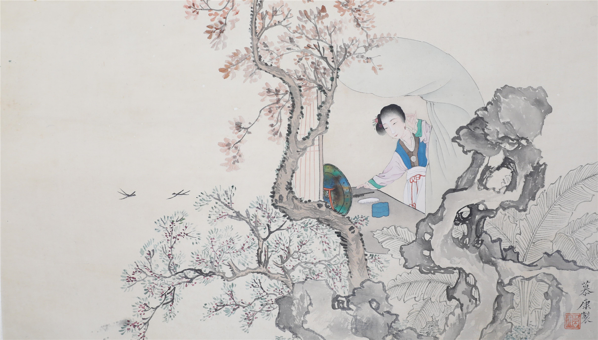 郑慕康,名师元、师玄,号慕康,广东省潮阳人。幼年对美术、广告图案很有兴趣。1918年进入上海美专,以素描中的肖像画为主攻方向,师从冯超然,得明代曾鲸晕染法神髓,将西洋画的明暗法、透视法和传统工笔人物糅合为一;擅长人物画,兼工诗书。