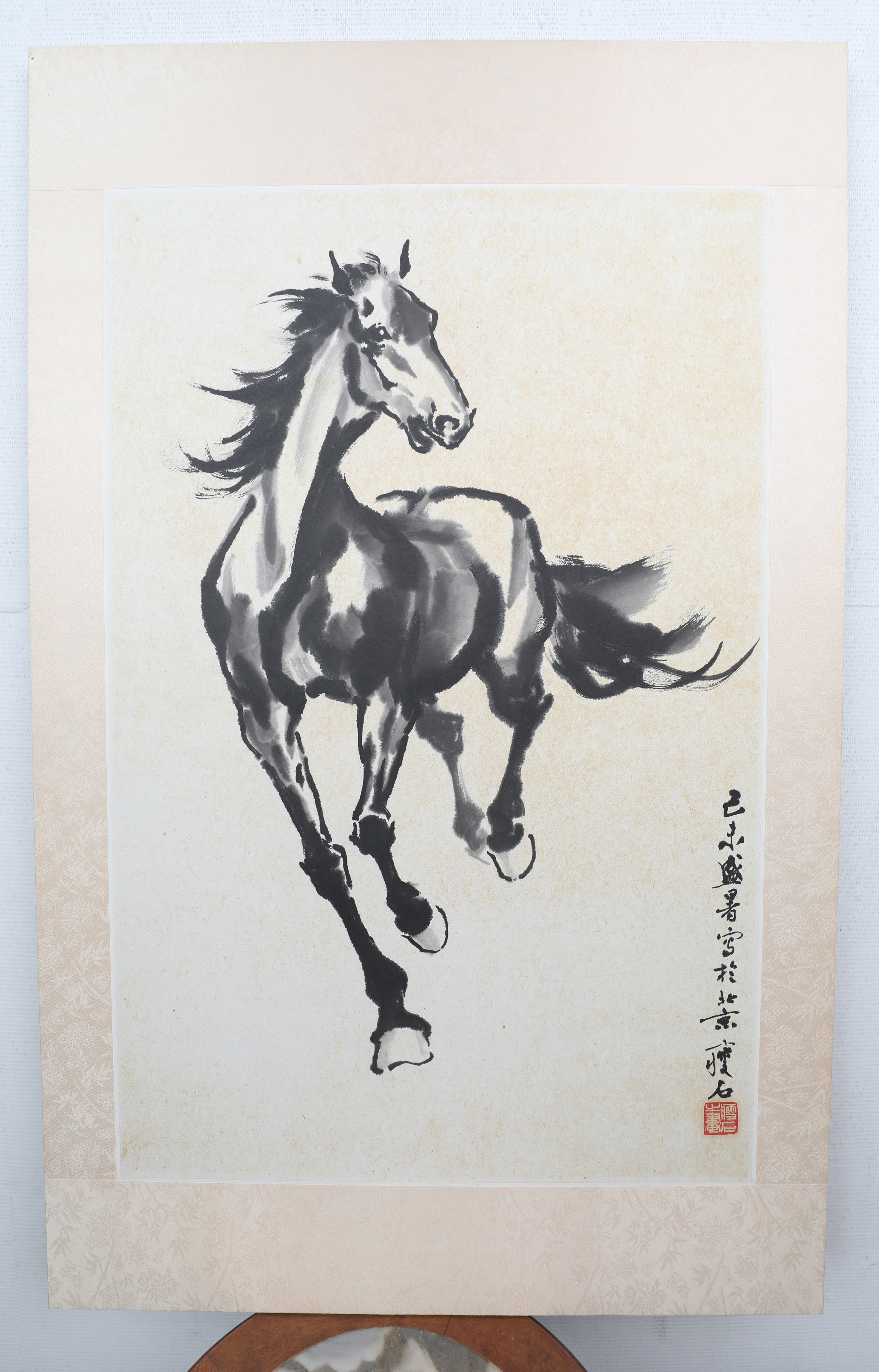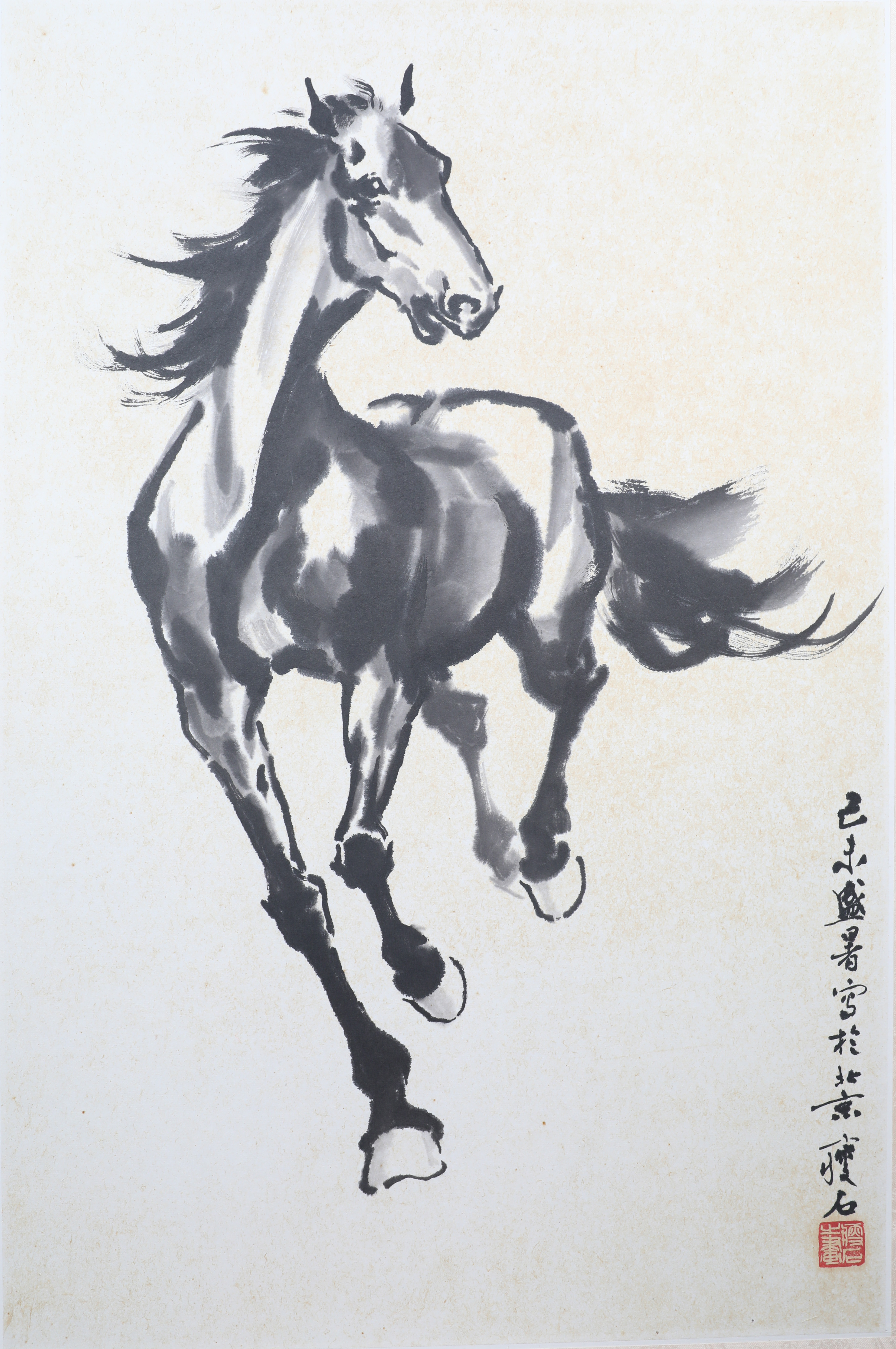 尹瘦石(1919—1998),江苏宜兴人,著名书画艺术家;他的艺术始终紧紧踏着时代节拍而歌,深得郭沫若、徐悲鸿等文化巨擘的赞赏;1945年在重庆为毛泽东画像,与柳亚子举办《柳诗尹画联展》。他的人物画注重以形写神,人物的性格、气质、特征流于笔下。所画奔马,神态生动,气象万千,是具有个人特色而取得较高成就的画家;书法上,早年涉猎多家,工于小楷,行草书尤所擅长。书法结体深稳,气势宏伟,流畅温润,遒峻内蕴,诚为难得之一家;曾任中国美协内蒙古分会主席、北京画院副院长、中国文联副主席等。