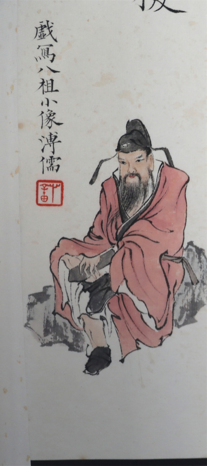 溥心畬[yú],满族,原名爱新觉罗·溥儒,初字仲衡,改字心畬,自号羲皇上人、西山逸士,北京人,著名书画家、收藏家。为清恭亲王奕訢之孙。曾留学德国,笃嗜诗文、书画,皆有成就。画工山水、兼擅人物、花卉及书法,与张大千有“南张北溥”之誉,又与吴湖帆并称“南吴北溥”。