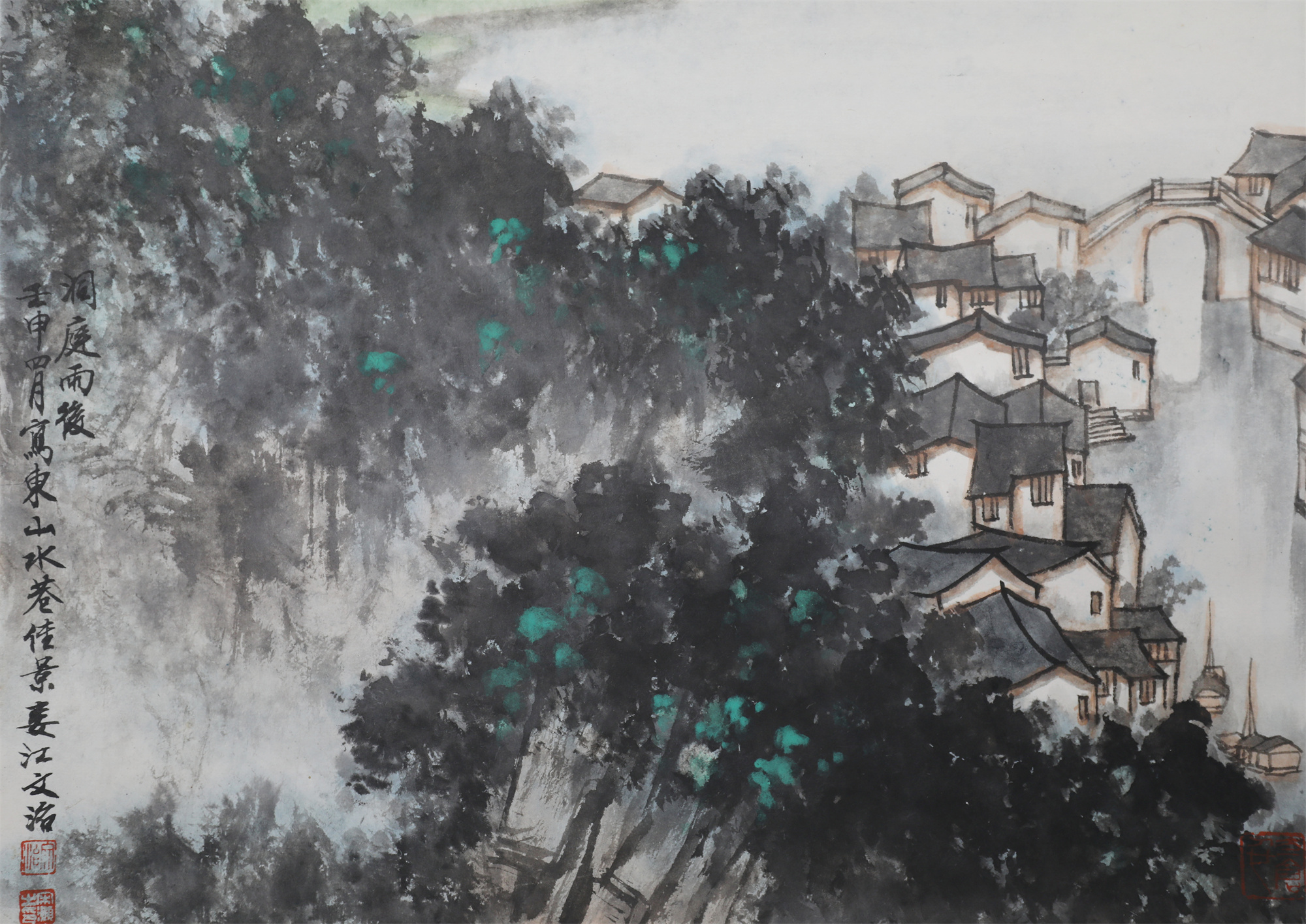 宋文治(1919-1999),现代画家。江苏太仓人。早年从张石园学习山水,后得陆俨少指授并拜吴湖帆为师。1951年入江苏省国画院受傅抱石影响,致力于山水画创新。其早年作品风格疏秀;中年笔墨劲健,意境灵奇,时代气息浓郁;晚年变法,尝试没骨泼彩,格调清新,意境空蒙迷茫。曾任南京大学教授、江苏美协副主席、江苏省国画院副院长等职。出版有《宋文治画集》《宋文治作品选集》等。