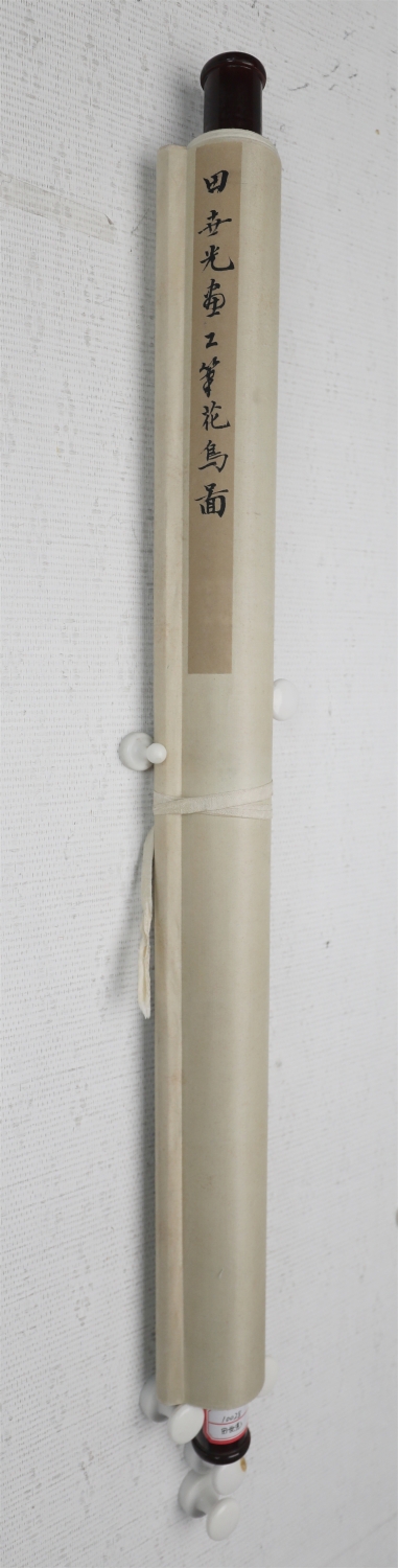田世光(1916年10月—1999年7月)号公炜,祖籍山东乐陵,世居北京西海淀六郎庄。师承张大千、赵梦朱、吴镜汀、于非闇、齐白石诸先生。早年拜张大千门下,为大风堂弟子之一 。早年求学于京华美术学院,专攻国画花鸟,解放前在北平国立艺专任教,曾任中央美院教授。他长期从事花鸟、山水画创作,继承了宋元派双勾重彩工笔花鸟画的优良传统技法,并赋之予新的时代精神,为我国现代工笔花鸟画名家。田世光先生是中国美术家协会会员,北京工笔重彩画副会长,中国画研究院第一届院务委员。