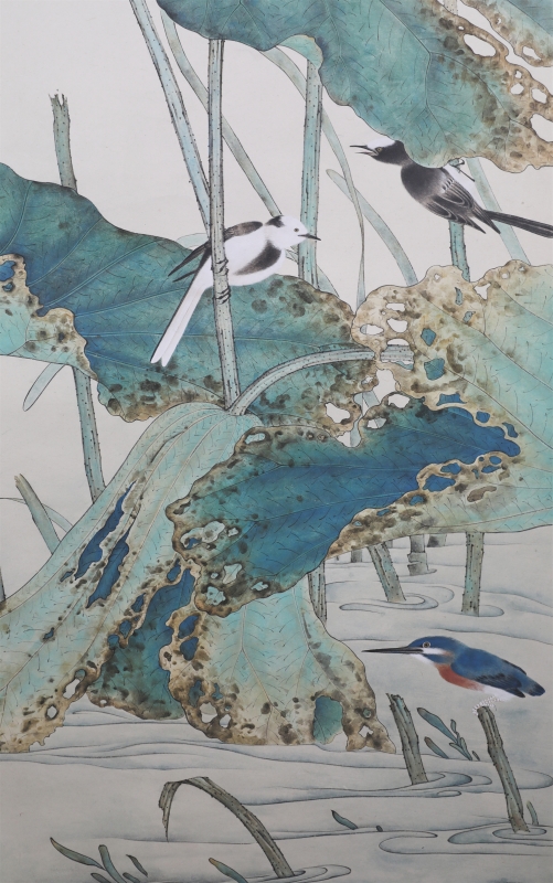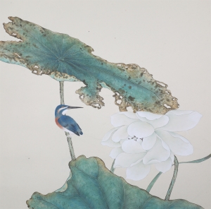荷花翠鸟