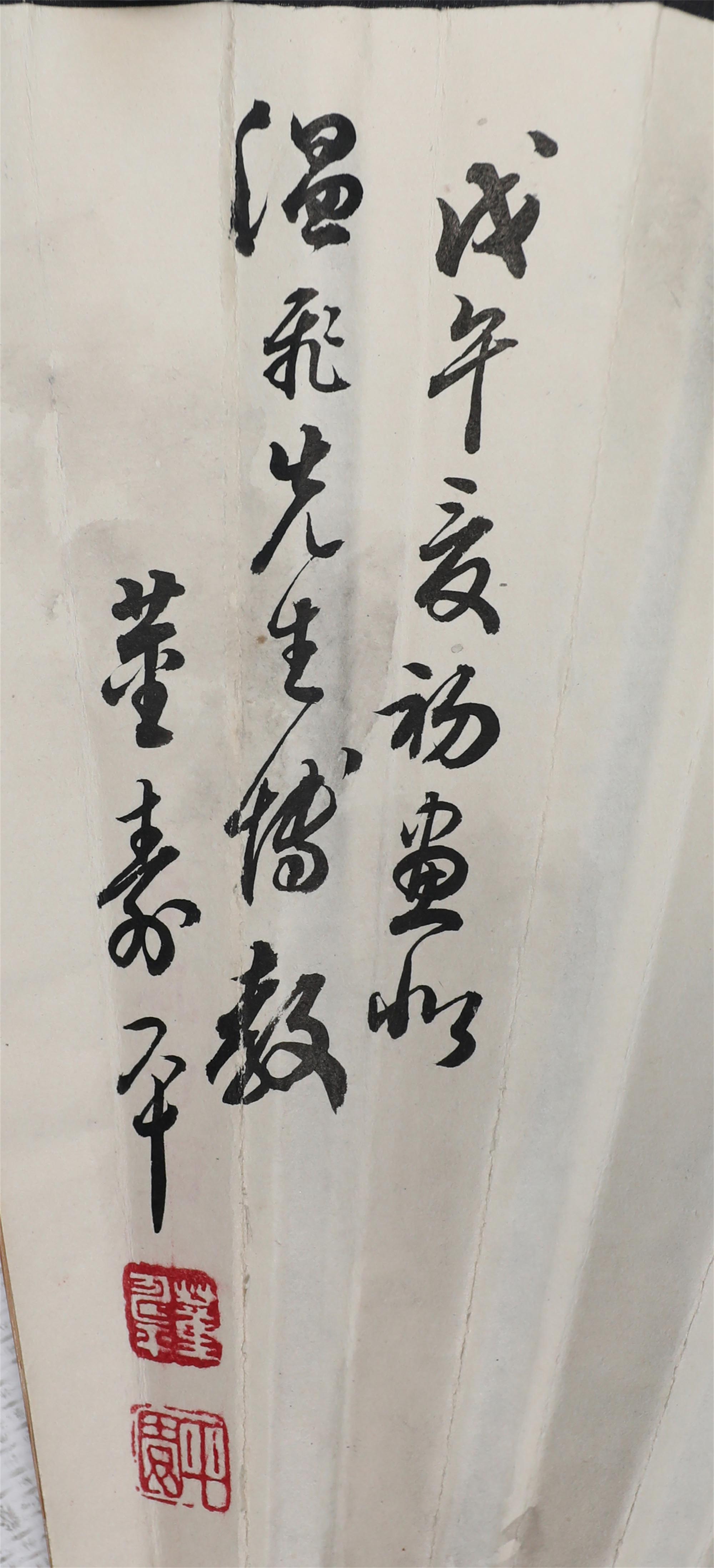 董寿平(1904-1997),原名揆,字谐柏,后改名寿平,山西省临汾市洪洞县杜戍村人,当代著名画家、书法家,全国第五、六届政协委员。董寿平早年毕业于天津南开大学和北京东方大学,以画松、竹、梅、兰著称,晚年以黄山为题材画山水,亦善书法,历任中国书法家协会顾问、中国美术家协会会员、北京荣宝斋顾问、全国政协书画室主任、北京中国画研究会名誉会长、山西省文物研究会名誉会长、中国人民对外友好协会理事、中日友协理事、北京对外友协副会长等职,曾获得 “富士美术奖章”,主要书画作品有《黄山云海》、《人字瀑》、《大渡河》、《雨后黄山》等。