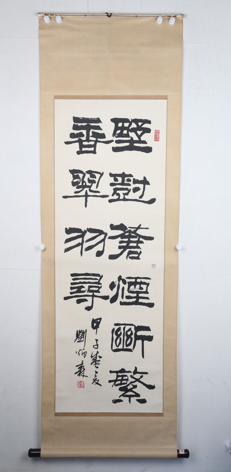 刘炳森(1937年8月-2005年2月15日)字树庵,号海村,幼年自号刘五先生。1962年夏于北京艺术学院美术系中国画山水科本科毕业,同年秋至北京故宫博物院从事古代法书绘画的临摹复制和研究工作至今。曾任北京故宫博物院研究员、中国书法家协会副主席、中国文联副主席、中国佛教协会副会长、中国人民政治协商会议全国委员会常务委员、中国教育学会书法教育专业委员会理事长、中国书画函授大学特聘教授、日本白扇书道会顾问、日本书道研究泉会顾问、中日友好二十一世纪委员会委员等。其刘体隶书影响甚广。