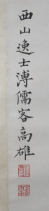 溥心畬[yú],满族,原名爱新觉罗·溥儒,初字仲衡,改字心畬,自号羲皇上人、西山逸士,北京人,著名书画家、收藏家。为清恭亲王奕訢之孙。曾留学德国,笃嗜诗文、书画,皆有成就。画工山水、兼擅人物、花卉及书法,与张大千有“南张北溥”之誉,又与吴湖帆并称“南吴北溥”。