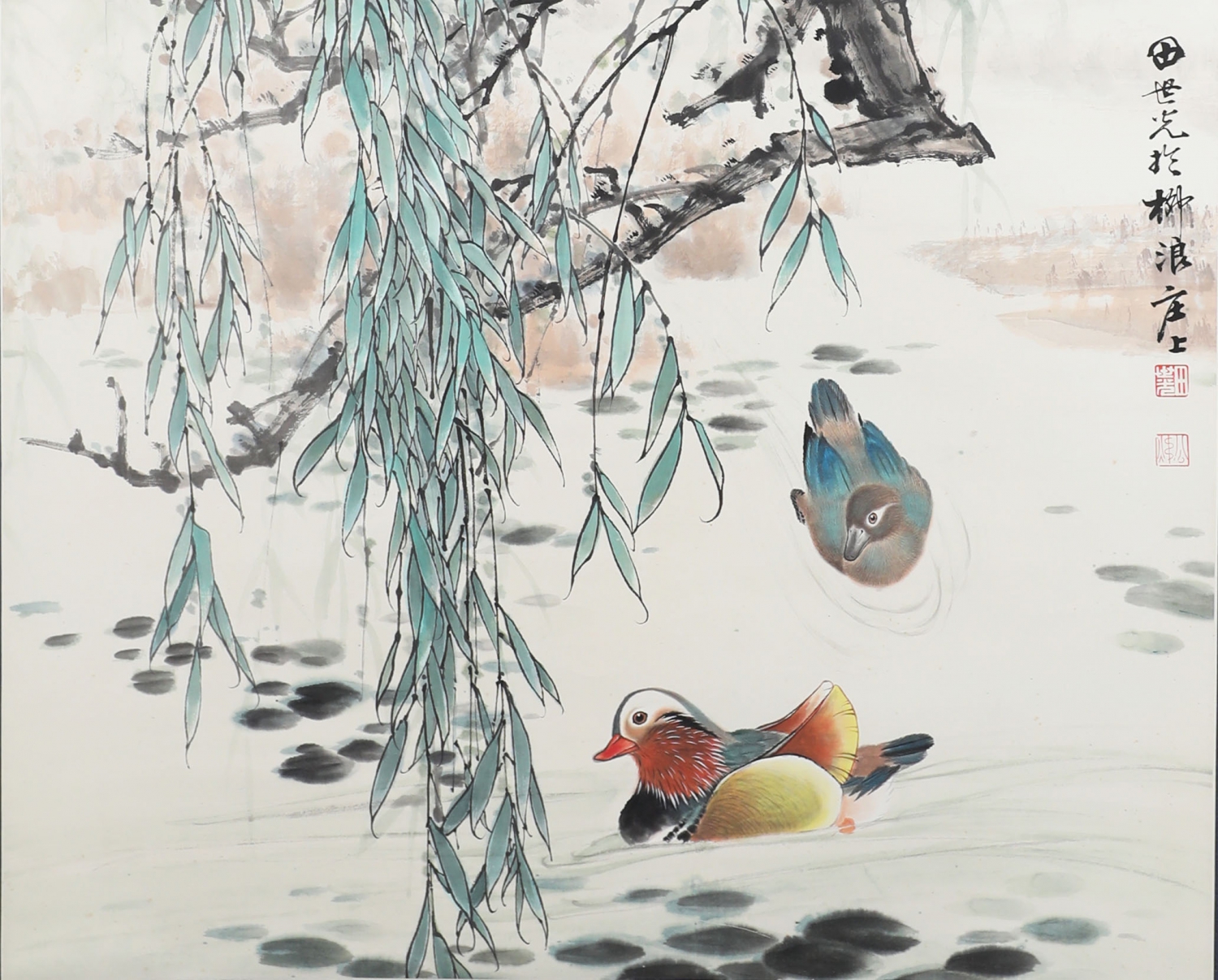 7124 田世光 《鸳鸯戏水》