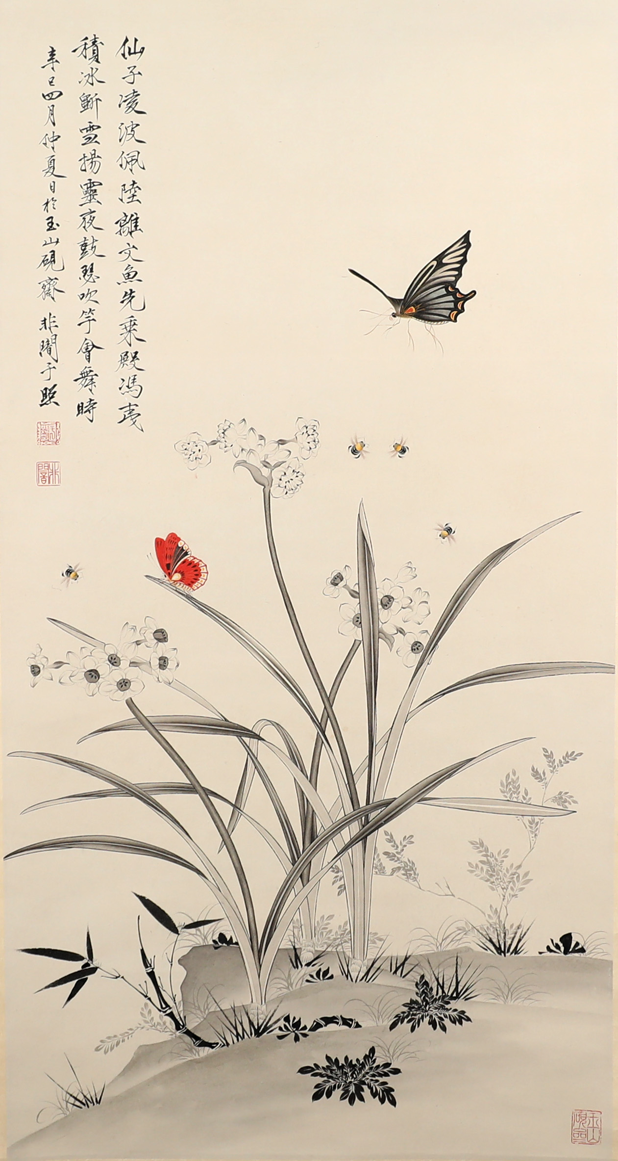 工笔水仙蝴蝶