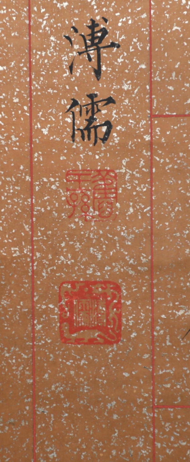 溥心畬[yú],满族,原名爱新觉罗·溥儒,初字仲衡,改字心畬,自号羲皇上人、西山逸士,北京人,著名书画家、收藏家。为清恭亲王奕訢之孙。曾留学德国,笃嗜诗文、书画,皆有成就。画工山水、兼擅人物、花卉及书法,与张大千有“南张北溥”之誉,又与吴湖帆并称“南吴北溥”。