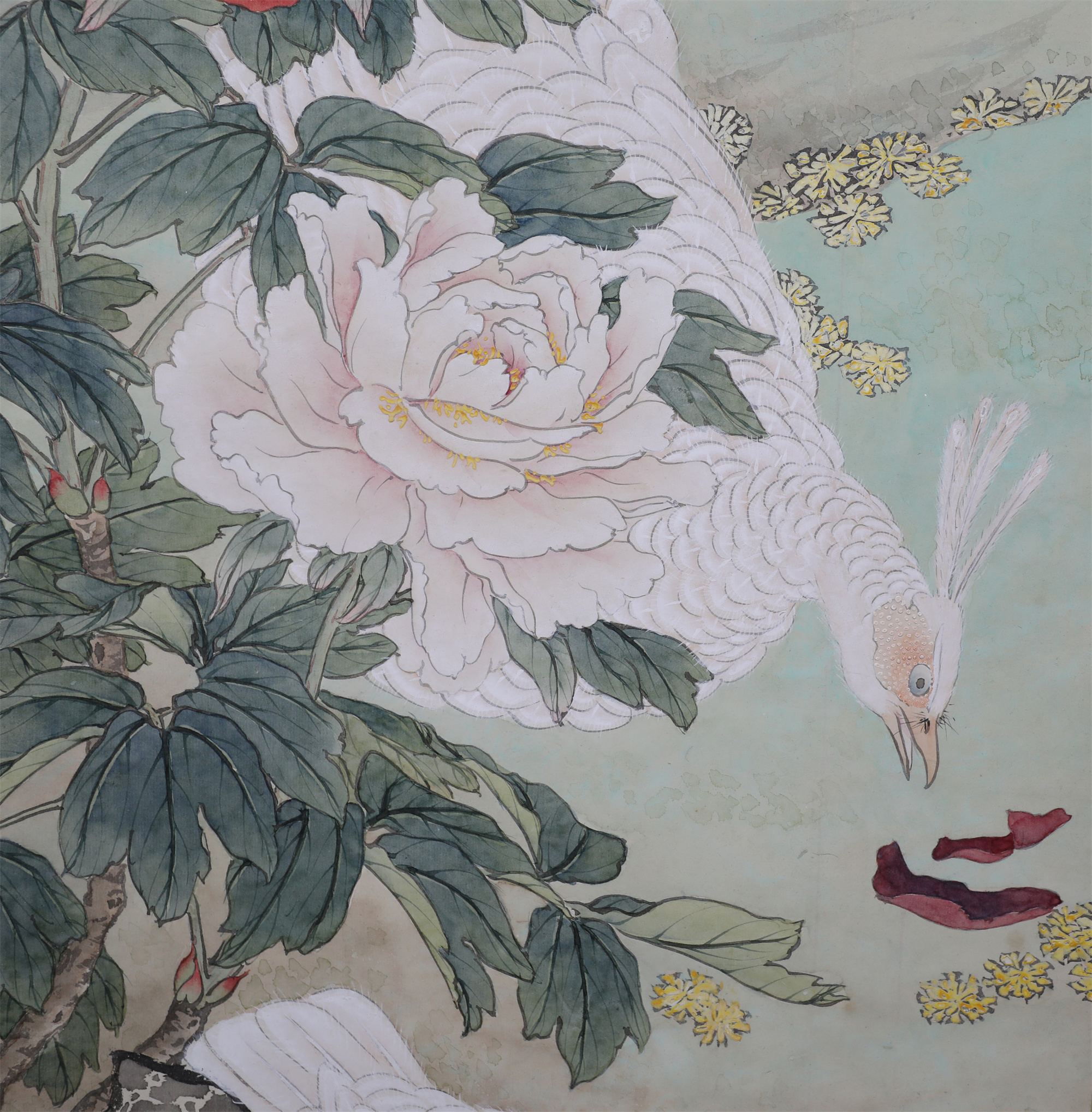 田世光(1916年10月—1999年7月)号公炜,祖籍山东乐陵,世居北京西海淀六郎庄。师承张大千、赵梦朱、吴镜汀、于非闇、齐白石诸先生。早年拜张大千门下,为大风堂弟子之一 。早年求学于京华美术学院,专攻国画花鸟,解放前在北平国立艺专任教,曾任中央美院教授。他长期从事花鸟、山水画创作,继承了宋元派双勾重彩工笔花鸟画的优良传统技法,并赋之予新的时代精神,为我国现代工笔花鸟画名家。田世光先生是中国美术家协会会员,北京工笔重彩画副会长,中国画研究院第一届院务委员。