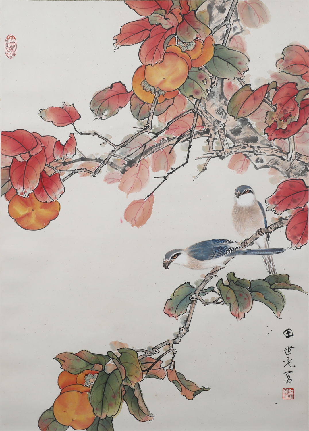 9150 田世光 《红叶双禽》