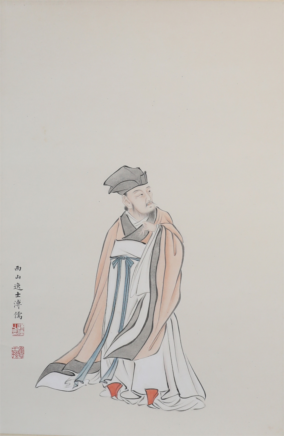 溥心畬[yú],满族,原名爱新觉罗·溥儒,初字仲衡,改字心畬,自号羲皇上人、西山逸士,北京人,著名书画家、收藏家。为清恭亲王奕訢之孙。曾留学德国,笃嗜诗文、书画,皆有成就。画工山水、兼擅人物、花卉及书法,与张大千有“南张北溥”之誉,又与吴湖帆并称“南吴北溥”。