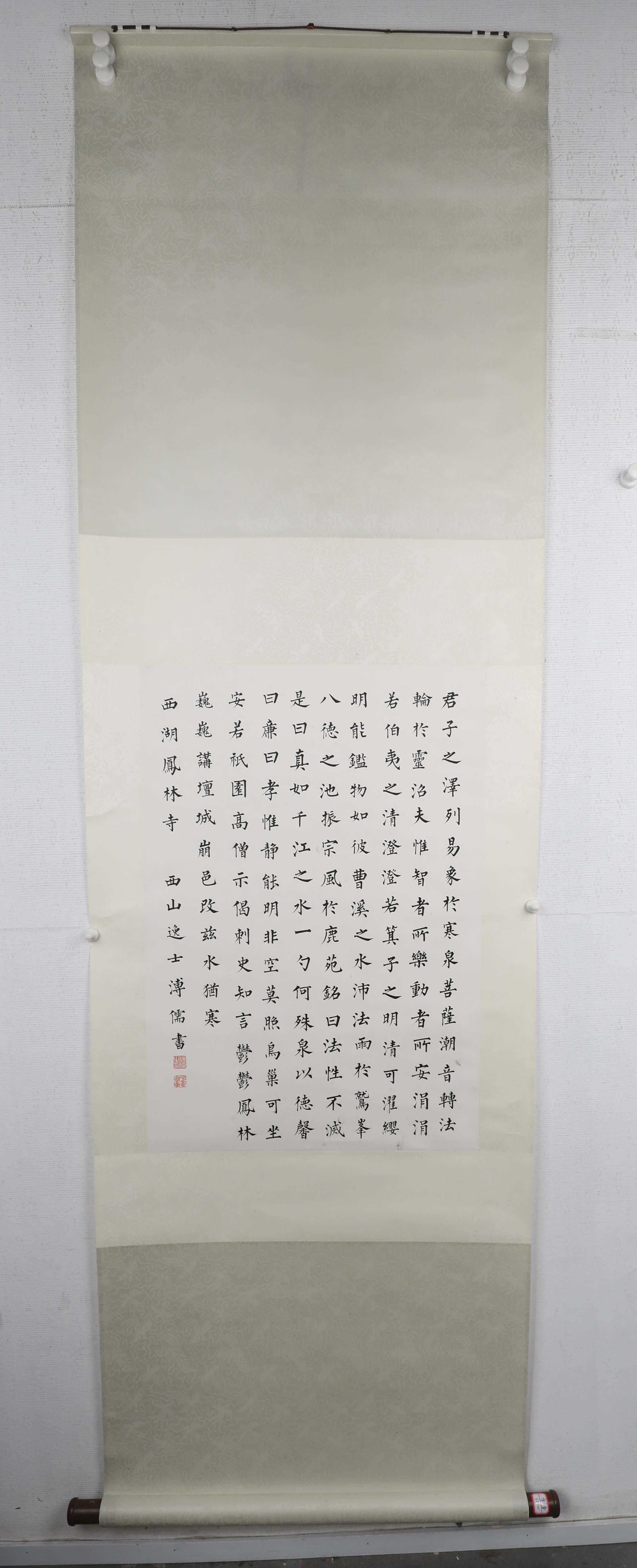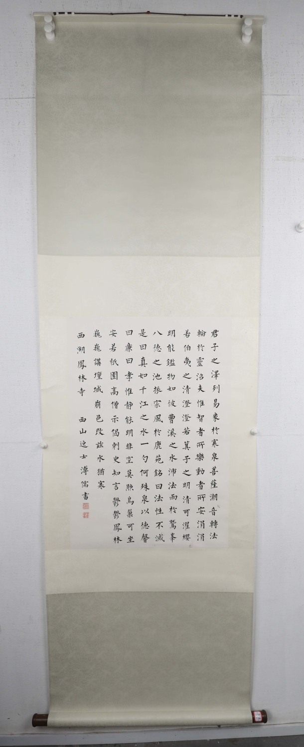 释文:君子之泽,列易象于寒泉。菩萨潮音,转法轮于灵沼。夫惟智者所乐,动者所安。涓涓若伯夷之清,澄澄若箕子之明。清可濯缨,明能鉴物,如彼曹溪之水,沛法雨于鹫峰,八德之池,振宗风于鹿苑。铭曰:法性不灭,是曰真如。千江之水,一勺何殊。泉以德馨,曰廉曰孝。惟静能明,非空莫照。鸟巢可坐,安若祇园。高僧示偈,刺史知言。郁郁凤林,巍巍讲坛。城崩邑改,兹水犹寒。