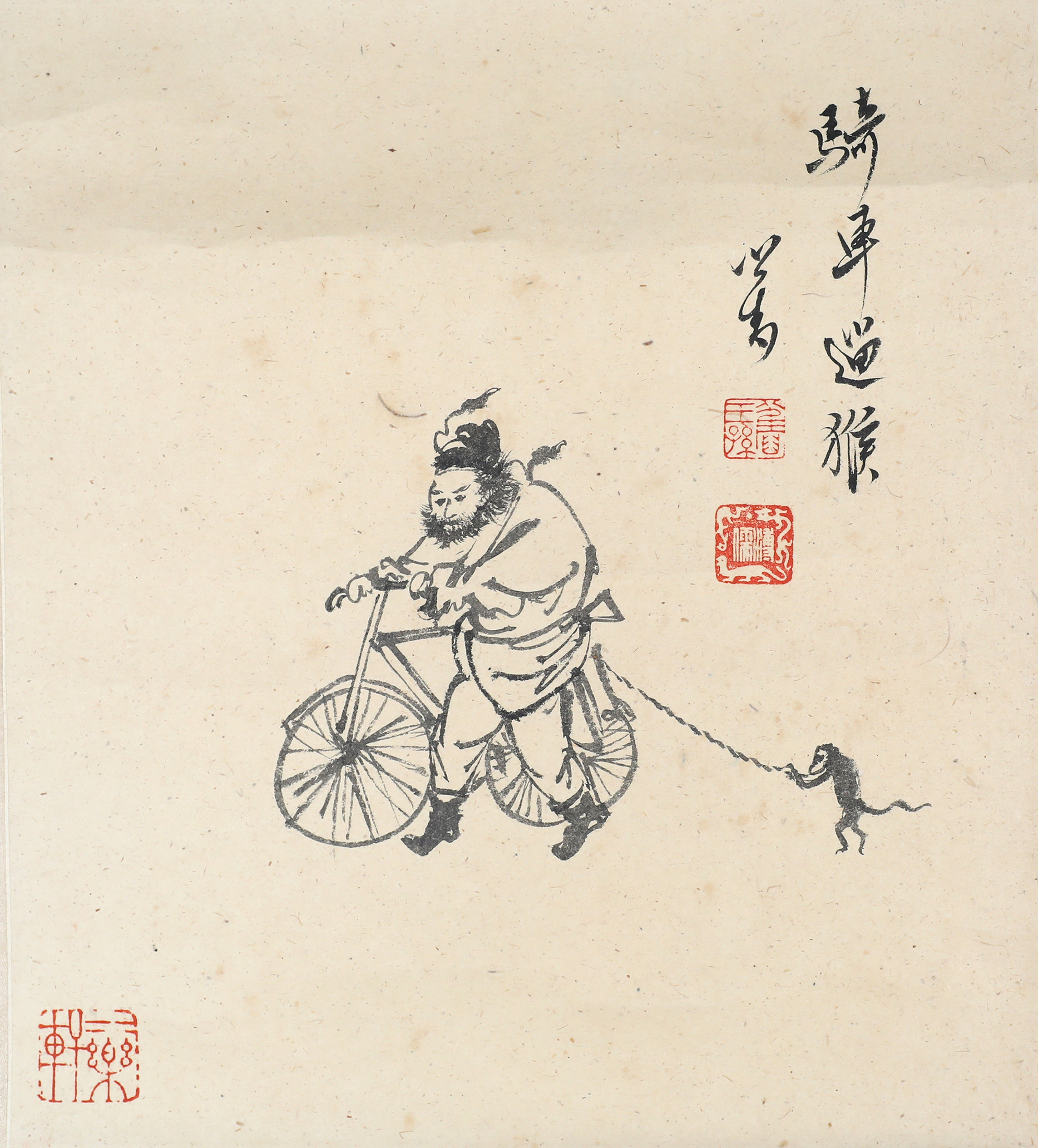 10614 P溥儒 《骑车遛猴》
