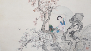 编号:7371 作者:郑慕康 名称:仕女 规格:29×33cm 形式:绢本立轴 售价:¥12000 备注:
