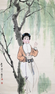 编号:10127 作者:赵蕴玉 名称:仕女 规格:46×83.5cm 形式:纸本立轴 售价:¥12000 备注: