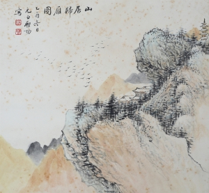 编号:9154 作者:启功 名称:山居归雁 规格:23×22cm 形式:纸本立轴 售价:¥58000 备注: