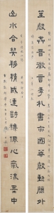 编号:7638 作者:王褆 名称:隶书十六言联 规格:4.5×36cm 形式:绢本镜心 售价:¥6800 备注: