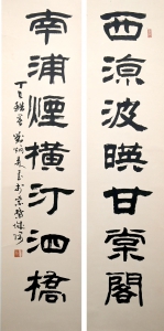 编号:7120 作者:刘炳森 名称:隶书五言联 规格:34*134cm*2 形式:纸本托画心 售价:¥25000 备注: