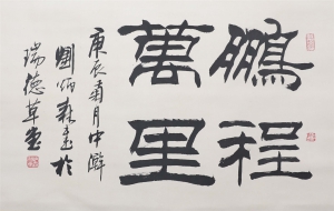 编号:10016 作者:刘炳森 名称:隶书诗句 规格:46*138cm 形式:纸本立轴 售价:¥25000 备注: