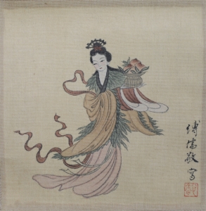 编号:10889 作者:溥儒 名称:仕女 规格:10*10cm 形式:绢本立轴 备注: