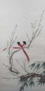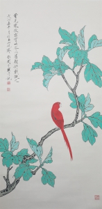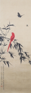 编号:8380 作者:于非厂 名称:红鹦鹉 规格:30*89cm 形式:绢本立轴 备注: