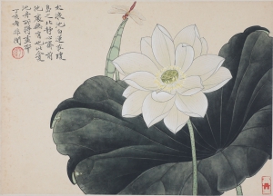 编号:7971 作者:于非厂 名称:白莲蜻蜓 规格:23.5×33cm 形式:纸本镜心 备注: