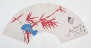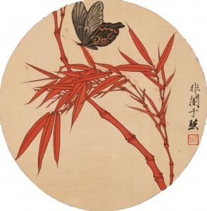 编号:c8086 作者:于非厂 名称:红叶蝴蝶 规格:D27.5cm 形式:绢本团扇 备注:
