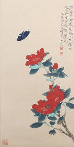 编号:8424 作者:于非厂 名称:山茶蝴蝶 规格:42*61cm 形式:绢本镜心 备注: