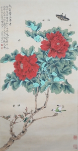 编号:8652 作者:于非厂 名称:牡丹蜜蜂 规格:38*84cm 形式:纸本立轴 备注: