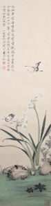 编号:8647 作者:于非厂 名称:工笔水仙蝴蝶 规格:84×43cm 形式:纸本立轴 备注: