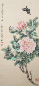编号:9751 作者:于非厂 名称:花蝶图 规格:69*31cm 形式:纸本立轴 备注: