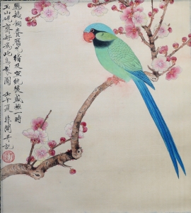 编号:9783 作者:于非厂 名称:鹦鹉 规格:82×41cm 形式:金墨绢本 备注: