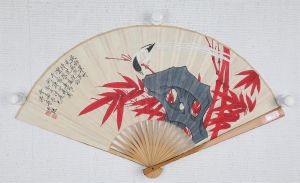 编号:10276 作者:于非厂 名称:花鸟 规格:52*19cm 形式:竹骨成扇 备注:
