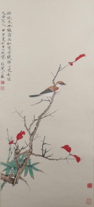 编号:10569 作者:于非厂 名称:红叶翠竹小鸟 规格:84*38cm 形式:纸本立轴 备注: