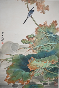 编号:9337 作者:田世光 名称:荷花翠鸟 规格:103*41cm 形式:纸本立轴 备注: