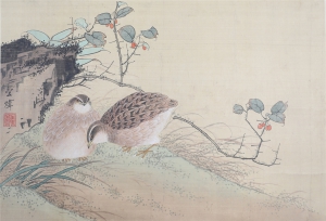 编号:8223 作者:田世光 名称:双兔 规格:37*68cm 形式:纸本立轴 备注:
