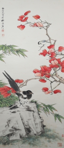 编号:8443 作者:田世光 名称:花鸟 规格:96*24cm 形式:绢本立轴 备注:
