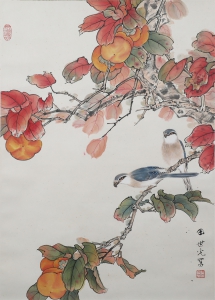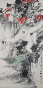 编号:8221 作者:田世光 名称:蜜桃绶带 规格:132*68cm 形式:纸本立轴 备注: