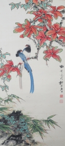 编号:9143 作者:田世光 名称:红叶喜鹊 规格:53×130cm 形式:纸本立轴 备注: