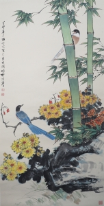 编号:9765 作者:田世光 名称:黄花翠竹 规格:69×136cm 形式:纸本立轴 备注:
